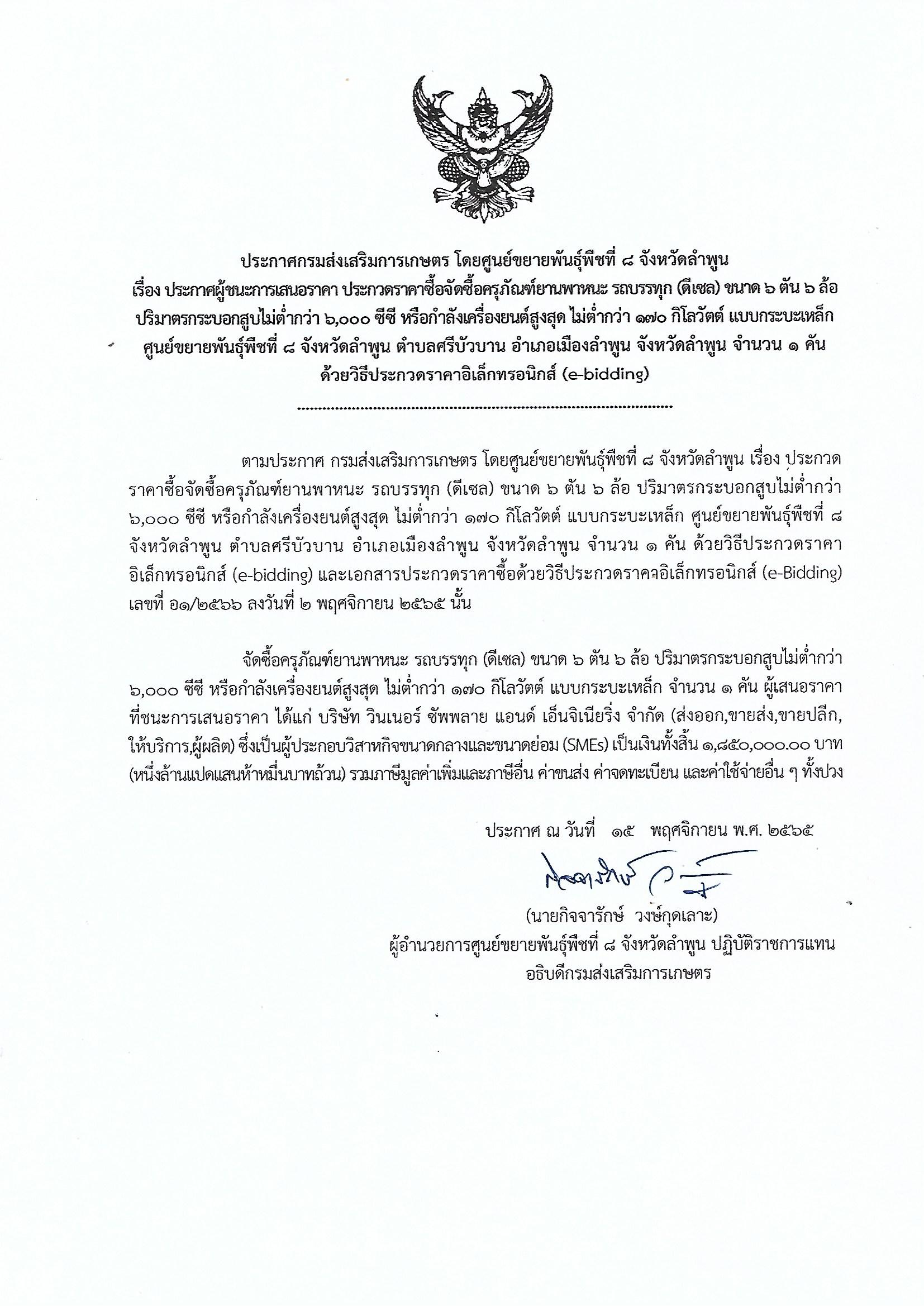 ประกาศศูนย์ขยายพันธุ์พืชที่ 8จังหวัดลำพูน